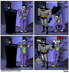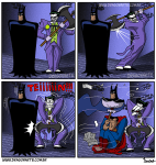 i feel like wonder woman could get away with throwing batman over her shoulder to carry him away exactly once, just because she would have the element of surprise. batman prepares for everything but there are limits. if you were batman would you ever in a million years expect a woman who is two inches shorter than you in one-inch heels to just pick you up and leave like she’s carrying a bag of sand to build a wall. like you are the victim of a cartoon caveman from the fifties. i postulate that you would not. maybe in her arms like a lumberjack’s bride, but a fireman’s carry? while he is not only conscious, but entirely capable of moving under his own power? this is the one scenario that batman never prepared for and he suffers the consequences. she could never get away with it again and so she doesn’t even try but from that moment on the possibility is always in the back of his mind. he is on alert. he wants her to try again so he can prove it won’t work this time. she never gives him the satisfaction. he can never explain to anyone how he is suffering. no one will understand. he stands on a rooftop in the rain and broods.