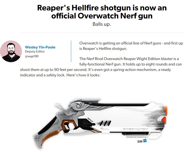 I swear, Reaper cosplayers are gonna be so extra. They’ll buy a ton of these, shoot them a couple of times, THROW THEM TO THE GROUND, and PULL OUT MORE FRICKIN NERF GUNS.