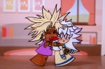 First we see Ryou and Marik making friends with one another and comparing hand sizes a very common thing for kids because comparing is just what one does. Shoes size, hand size, height, how far one can spit… wonderful childish things.