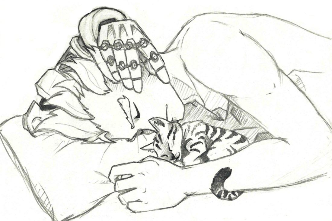 Jamison napping with his Scrap.