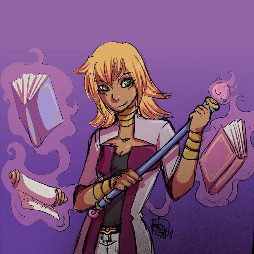 March 24 – the professor. Of magic! Didn’t know what to do for this one, but @iamterra suggested my old yugioh character. She’s basically Mana in the modern age, lol. #myart #fanart #yugioh #mana #darkmagiciangirl #magic