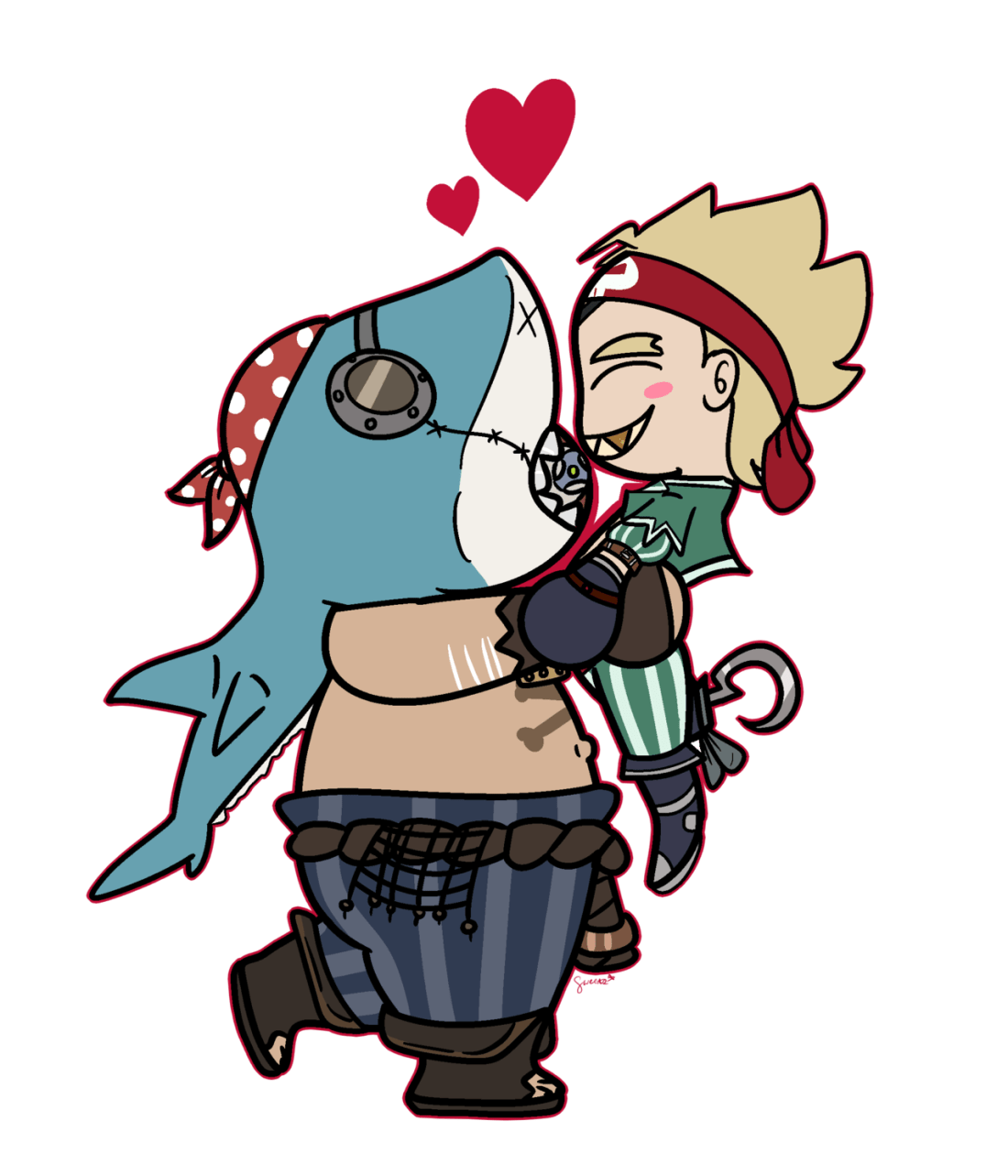 the bfs finally have matching pirate skins yay!! (ft. me not drawing junkrat in dreads)