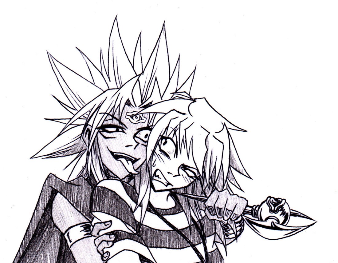 Still, the person the dark spirited man found himself hating more than his hikari had been the one who his arm rested around in the picture. “Bakura,” the man growled under his breath. What a sickening creature that man was. Always hanging around with his weaker self. Acting like Malik belonged to him. Oh how it aggravated him. But the worst thing about the thief that just dug in deep under his skin and gnawed away at him was his smile.