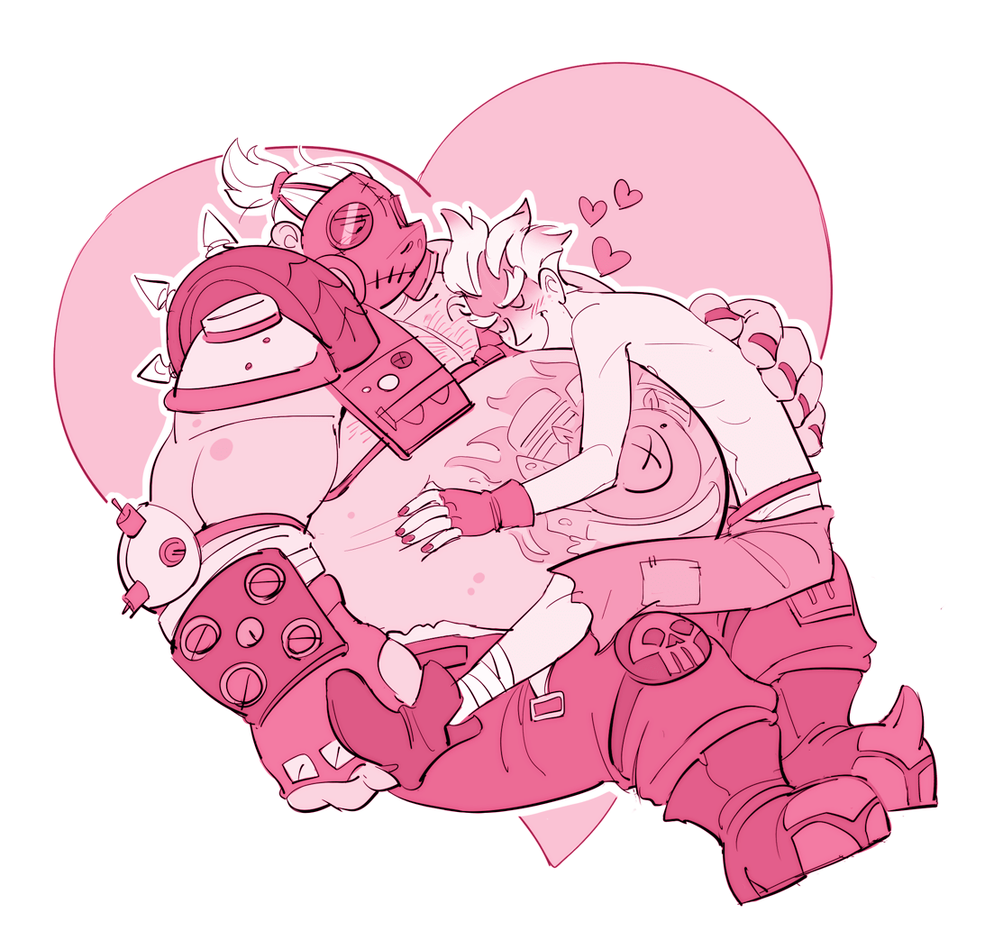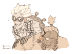 Look at Junkrat with his glasses doing his mandatory tuneups to his prosthetic leg. Yesss~ And dearest Roadhog helping him out!