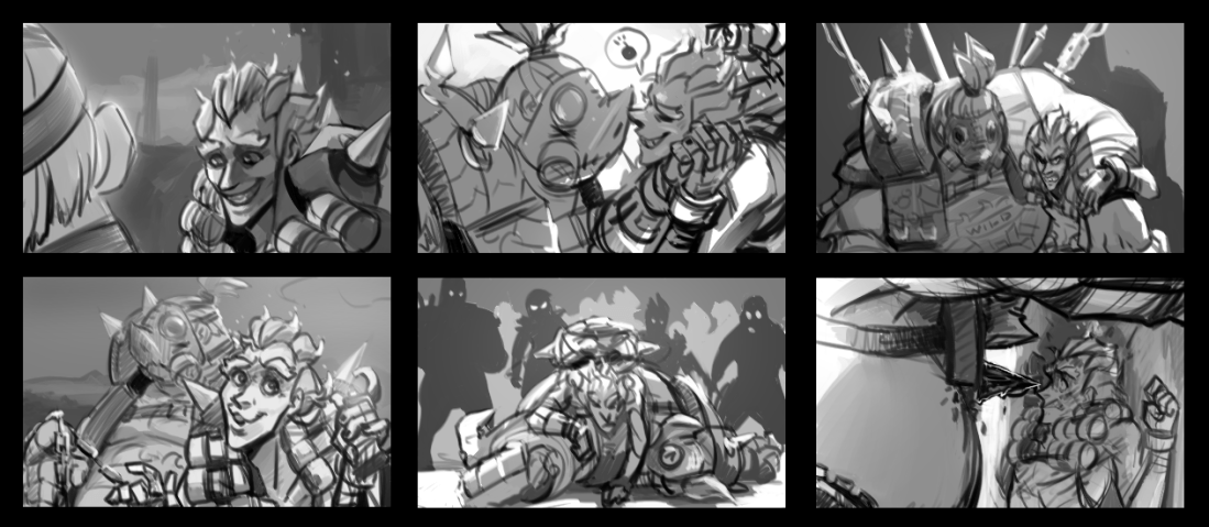 Another set of fanfic illustrations! Commission from the lovely @mayyoubekind ‘s Fix It! It’s a fun little body swap / character exploration story. :> Drawing Junkrat so stonefaced was pretty funny to do pf.