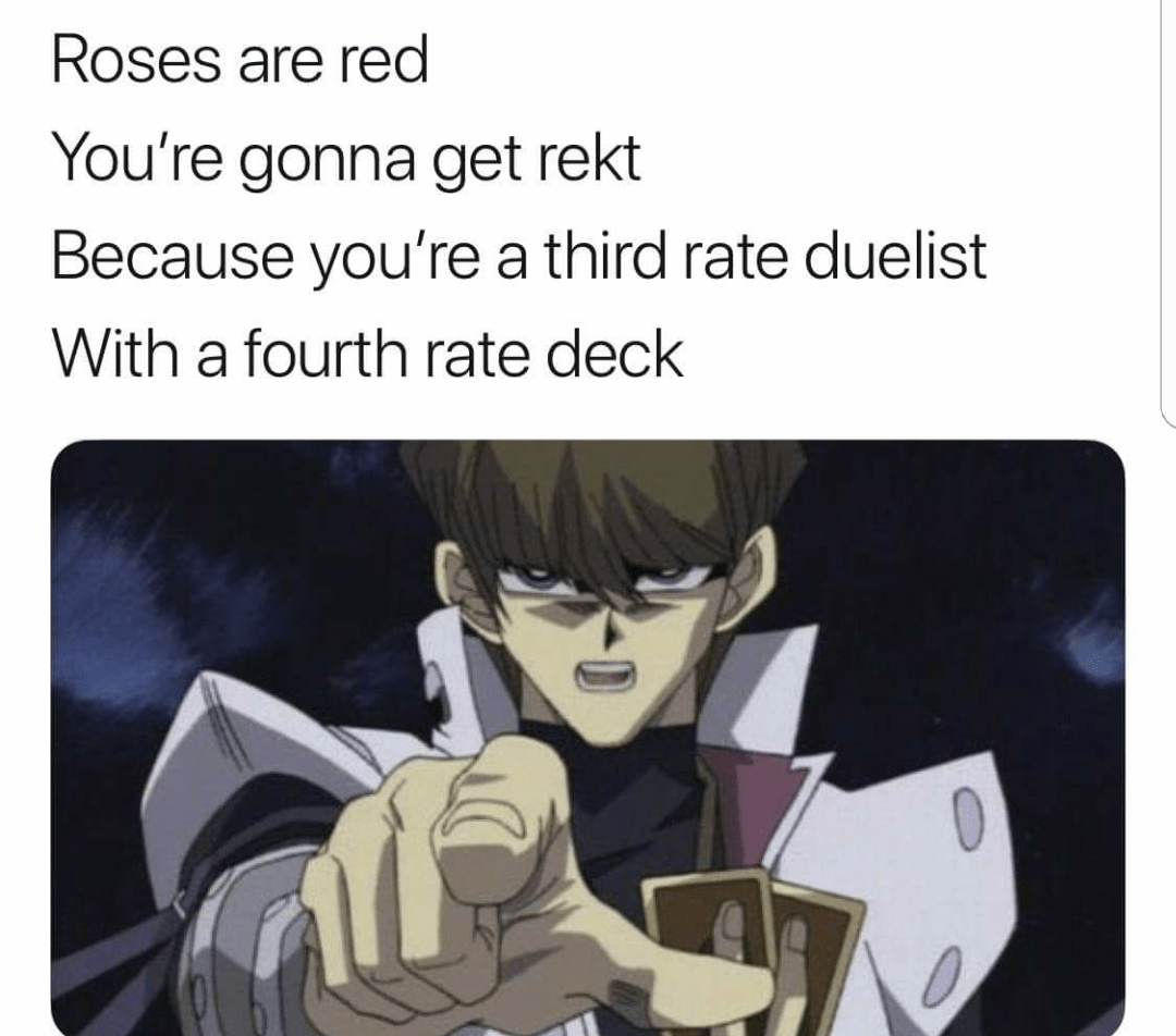 joey shouting “this bitch empty!! YEET” as he fucking chucks seto kaiba off the battle city blimp