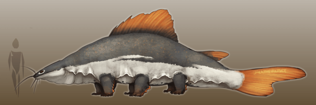 Large swamp dwelling omnivore that has 6 or more limbs”, though the idea is to branch off if inspiration strikes, not necessarily stick to it 100%. I looked at Red Tailed Catfish, Giant Salamanders, and Koskinonodon for inspiration.