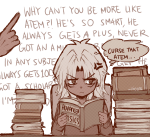He and Rishid start watching it together and wonder why the acting is so terrible only for Ishizu to join them in the living room a minute or two before the characters in the tape start getting naked. She is the first to realize it is a porn and starts freaking out on her bothers for watching such filth in the living room of all places. Ishizu demands they turn it off and get rid of the tape after asking who gave it to them only to go for the phone and give Joey Wheeler a piece of her mind.