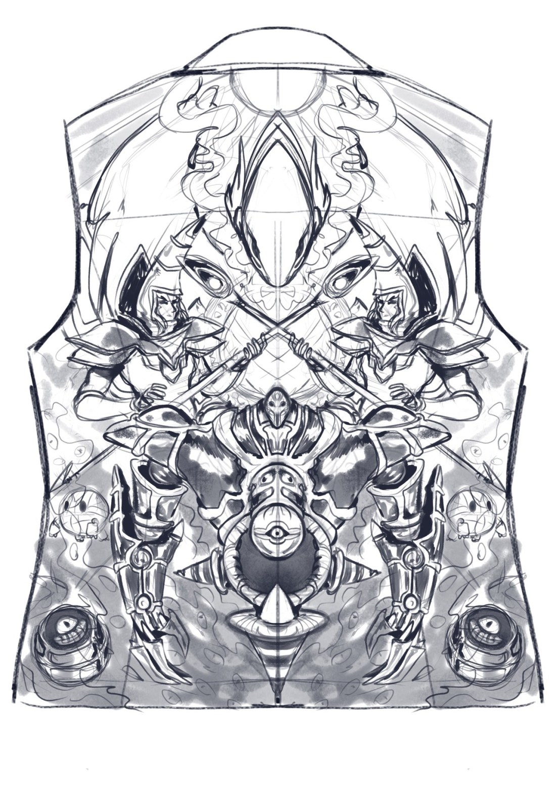 I have a very old piece of clothing which held a lot of patches years ago, but since I really grew out of my metal phase I had as a teen, I thought of giving it an upgrade which I will entirely paint on with posca markers and maybe some acrylics. This is a first design attempt of the back side. The front most likely will feature Toons, but I haven’t got to think about a nice composition. I thin I can add a few things oj the back, too. I want to include Shadow Ghoul for example, but couldn’t find a nice way to do it… Th overall design should go from dark at the bottom to light all the way up. Maybe I will have THE idea when I got the markers (which I haven’t – I have to wait for my birthday tomorrow to see if I can affort them :’D)